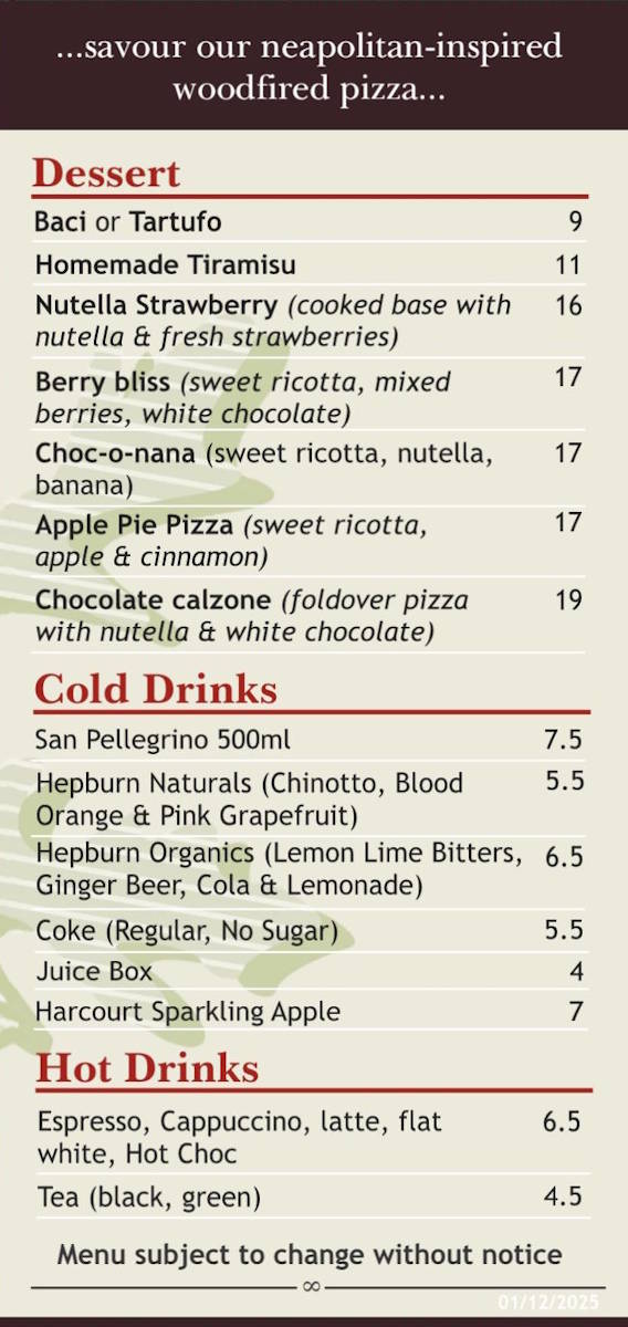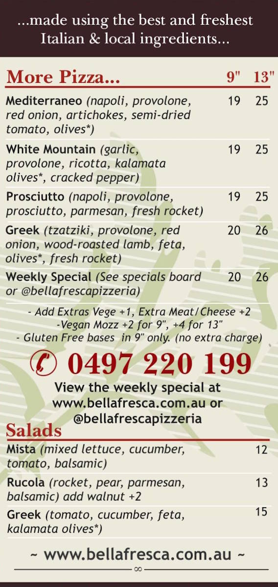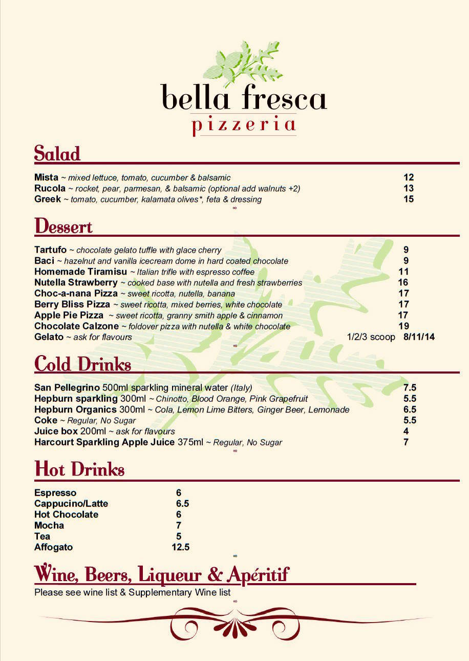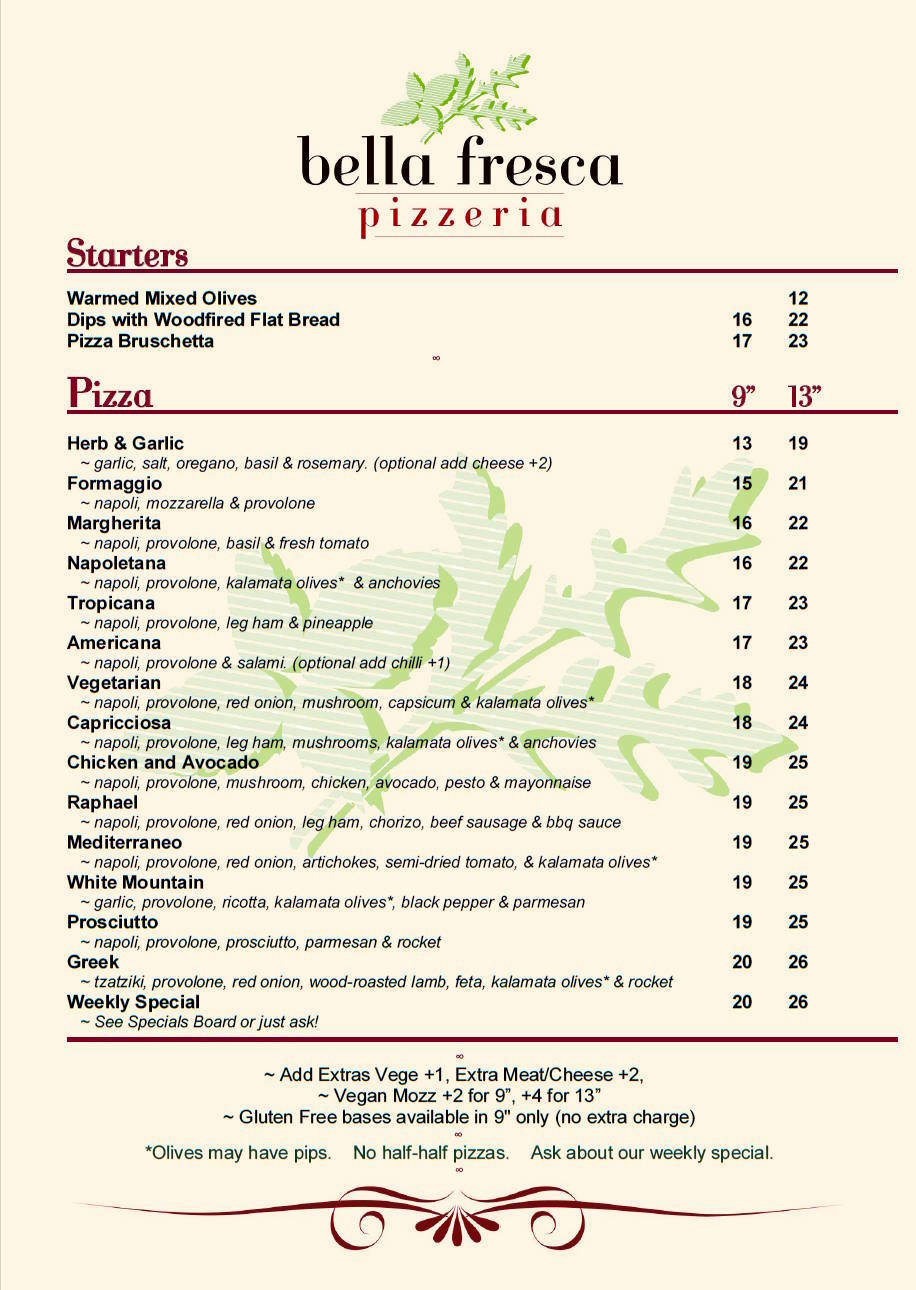 Pizza Dinner Menu
